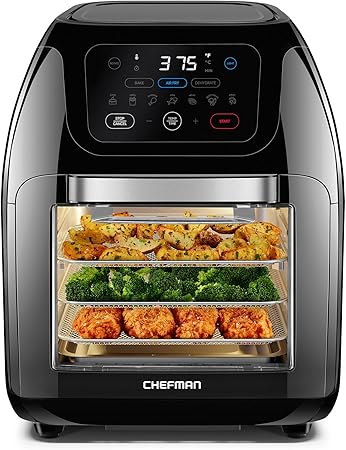 Chefman – Freidora digital multifuncional + asador, deshidratador, horno de convección, 17 preselecciones en pantalla táctil para freír, asar, deshidratar y hornear accesorios incluidos, L 10L, negro
